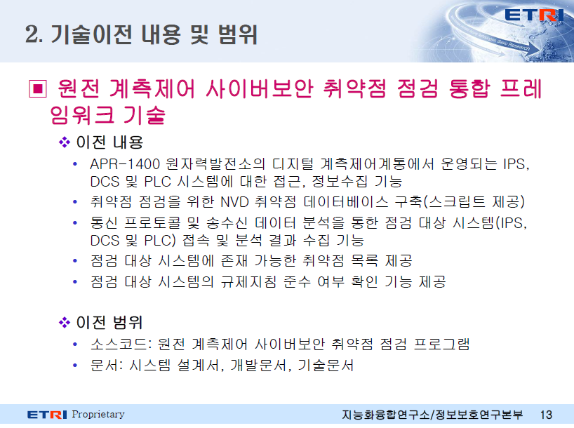 보유기관 및 연구자 : 한국전자통신연구원 최양서 박사