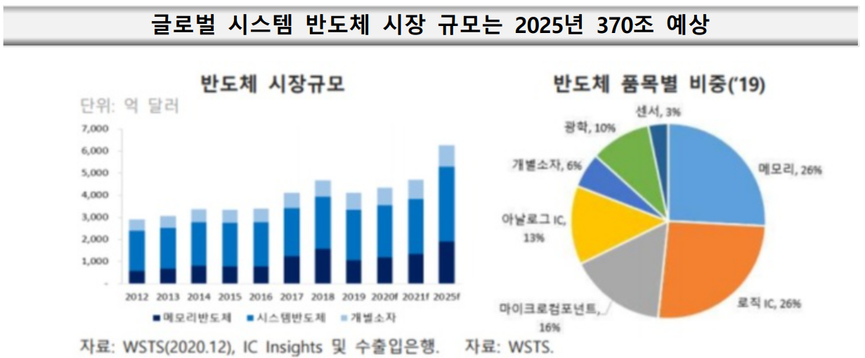 - 글로벌 반도체 시장은 PC/모바일 등 IT 기기 발달과 함께 시장규모도 지속 확대됨.