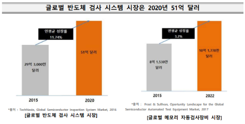 - 글로벌 반도체 검사 시스템 시장은 2015년 29억 3,000만 달러 규모에서 연평균 11.74%씩 성장하여 2020년 51억 달러 규모로 성장하였음.